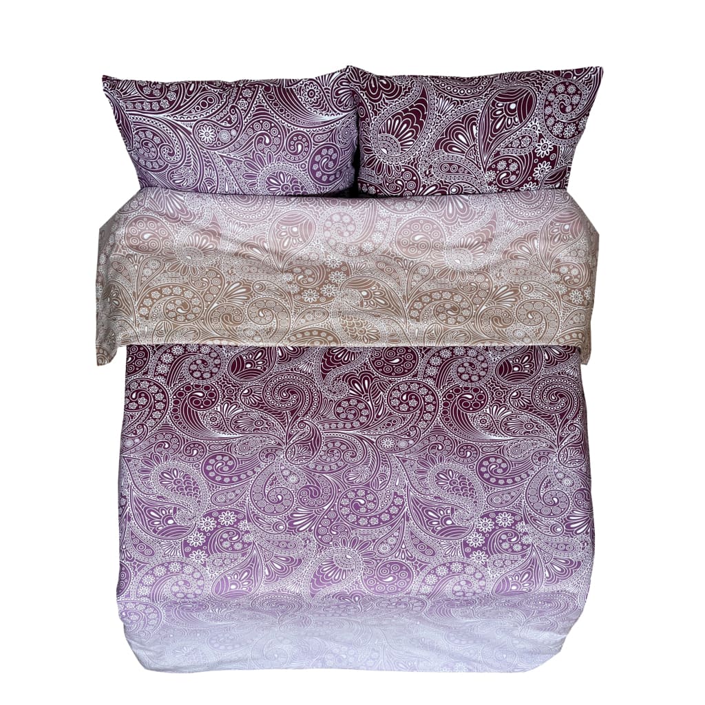 Henna – en elegant och konstnärlig design inspirerad av traditionella henna-mönster. En kombination av blommor och ornament smälter subtilt samman i varma toner av brunt och lila och skapar ett lyxigt och bohemiskt intryck. Ett utmärkt val för dem som uppskattar detaljerade, unika designer och vill ge sitt sovrum en personlig touch.