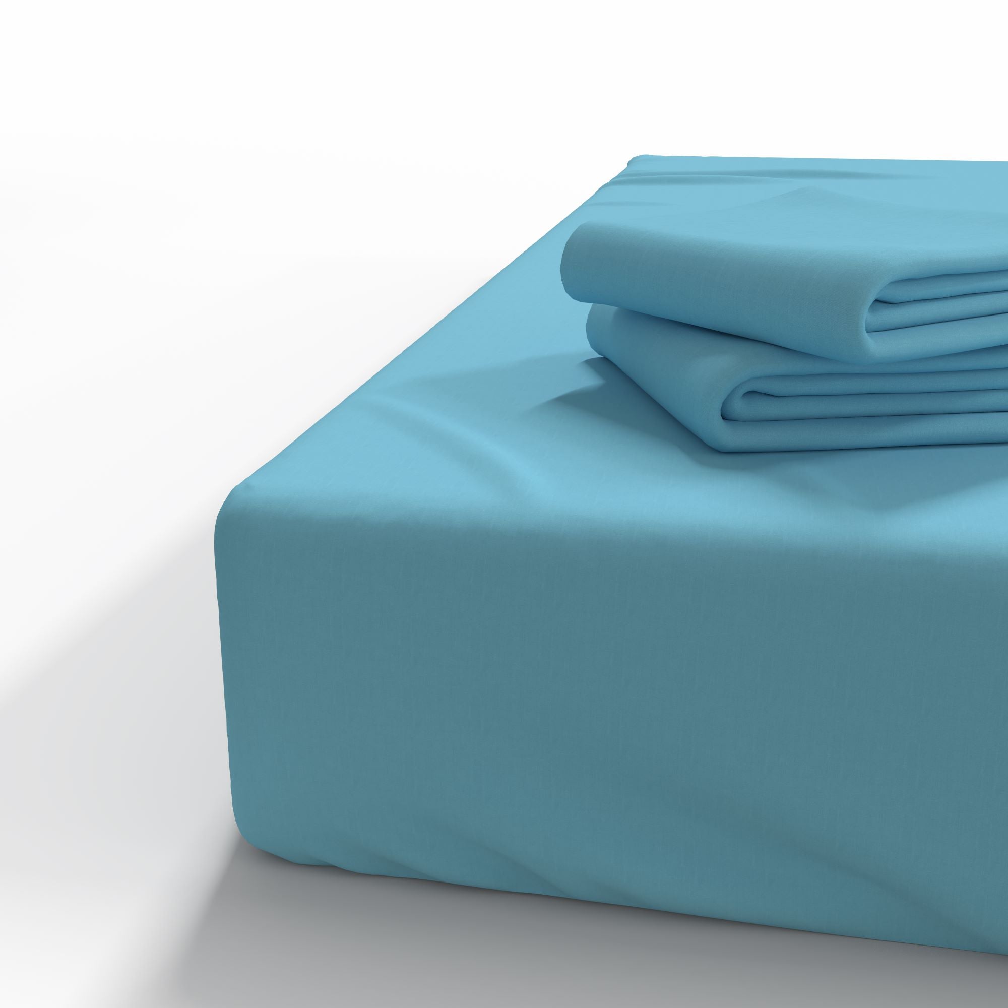 Sewn cotton fitted sheet with elastic | Halogen blue - Cotton