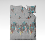 🍃 Jungle Lines - a modern and energetic design featuring stylized colorful leaves on a grey striped background. Turquoise, orange, yellow, and coral accents give the design a contemporary liveliness while maintaining a harmonious nature-inspired style. A great choice for those looking to add color and texture to their bedroom.