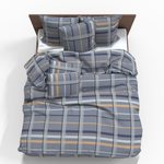 Metro – a modern and dynamic design blending elegant gray, subtle blue, and warm yellow lines. The classic checkered pattern creates an urban yet cozy feel, reminiscent of the rhythm of modern cities. A perfect choice for a minimalist or industrial style duvet cover.