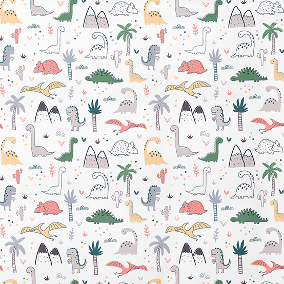 🦕 Dino Land – lekfull design med färgglada dinosaurier som bjuder in till en drömfylld resa. Passar perfekt med barnrummets inredning och sprider värme och glädje.