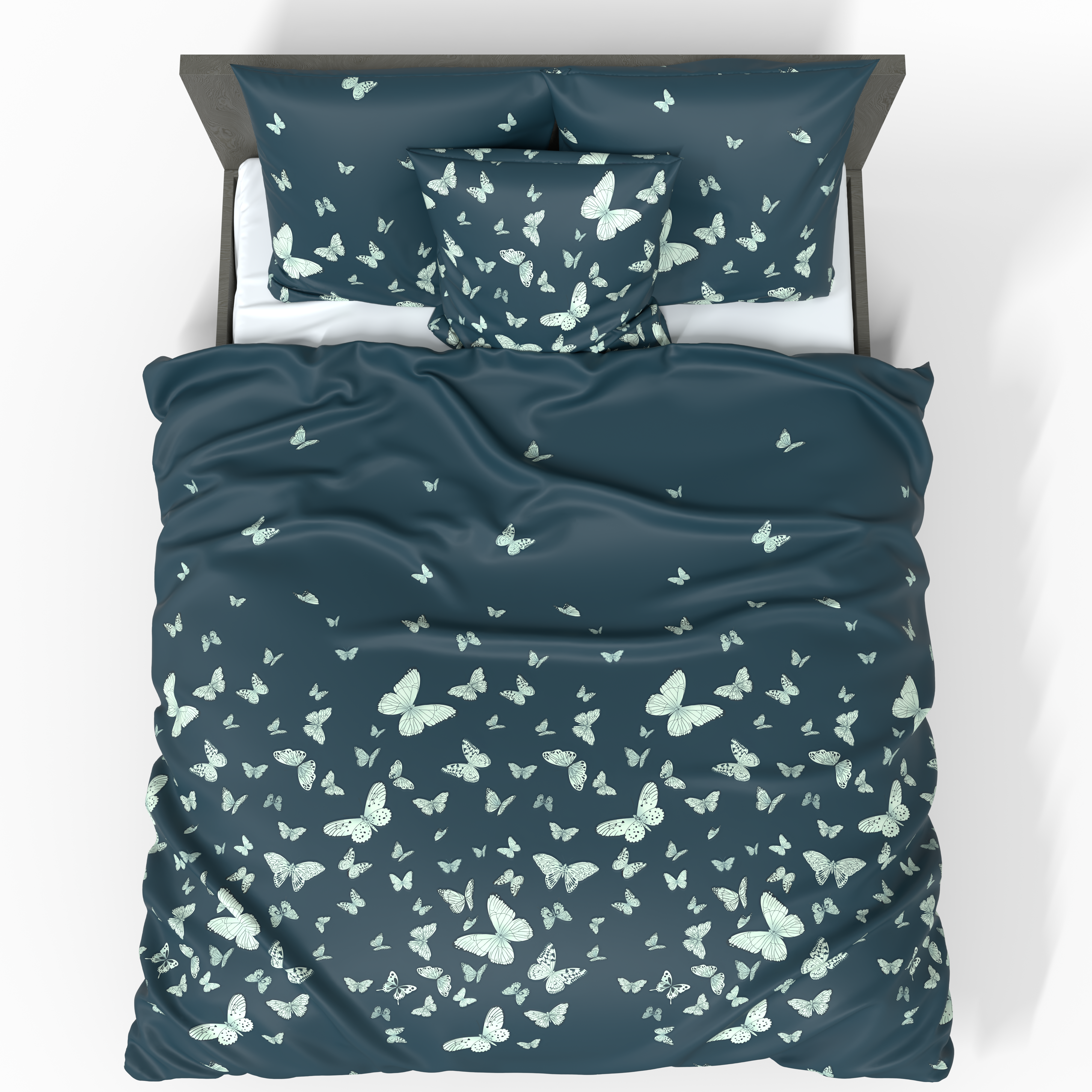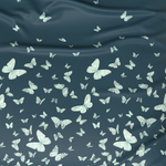 Detta lyxiga örngott utstrålar grace och lugn. Den djupa, mörkblå färgen ger interiören en känsla av lyx, medan de mjuka, vita fjärilarna tillför lätthet och subtil estetik.