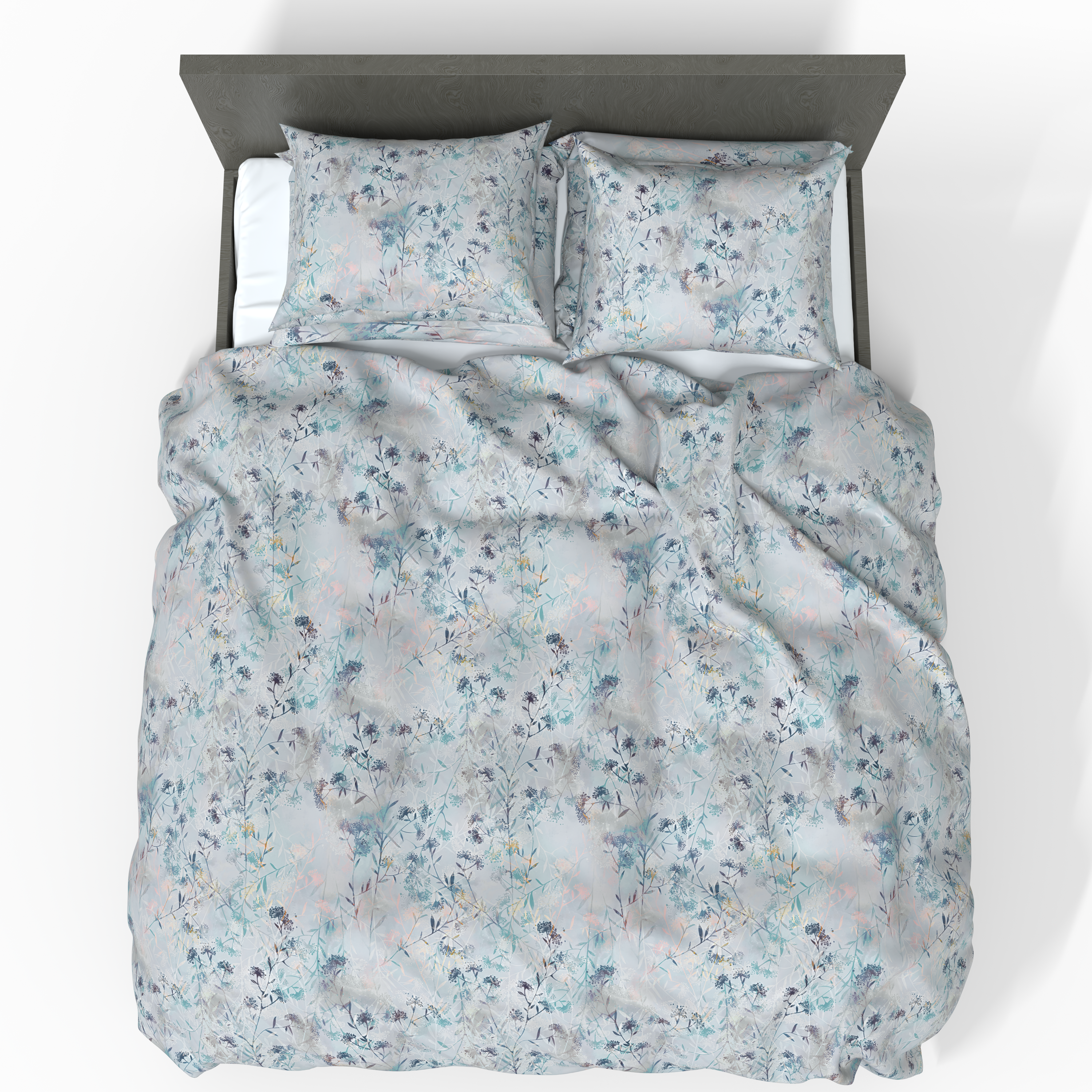 Detta Deluxe satinbomullstyg med subtila blommönster och växtmotiv skapar en mysig och lugn atmosfär. Ljusgrå färg med mjuka rosa och blå accenter tillför modernitet och fräschör till ditt sovrum, vilket ger dig möjlighet att njuta av komfort och ro.